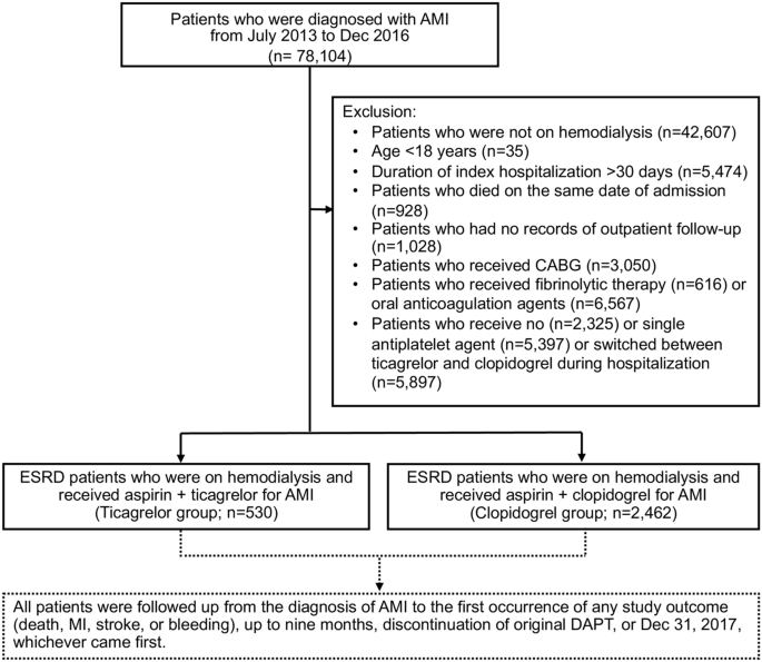 Outcomes After Ticagrelor Versus Clopidogrel Treatment In End-stage Renal Disease Patients With Acute Myocardial Infarction A Nationwide Cohort Study Scientific Reports