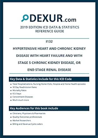 Icd 10 I132 - Hypertensive Heart And Chronic Kidney Disease With Heart Failure And With Stage 5 Chronic Kidney Disease Or End Stage Renal Disease - Dexur Data Statistics Reference Guide Ebook Health Dexur Kindle Store - Amazoncom